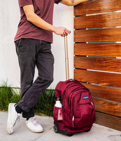 小旅行や荷物が多いときの移動に活躍する二輪タイプのローリングバッグ。収納式のショルダーストラップを装着すれば、バックパックとして背負って移動することもできます。機内持ち込みも可能なサイズ(※1)で、15インチのPCスリーブやドリンクを取り出しやすいサイドポケット、小物の収納に便利なオーガナイザーポケットなど、使い勝手を考えたデザインで、移動を快適にしてくれます。